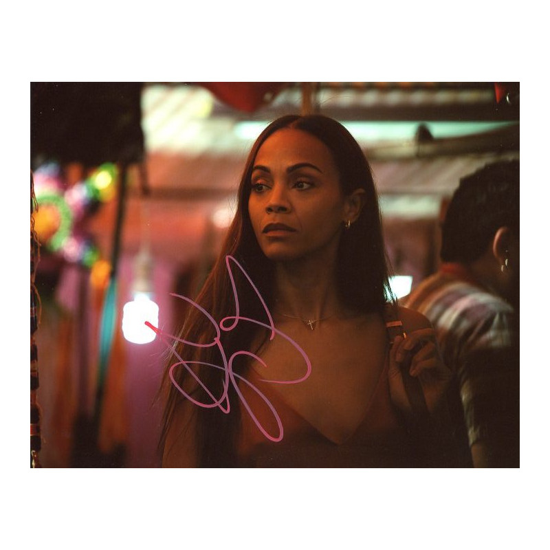 Find in second image Zoe Saldana signing for us