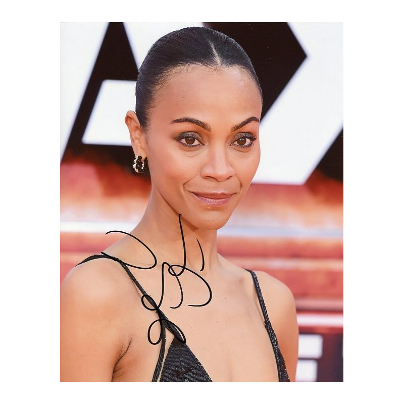 Find in second image Zoe Saldana signing for us
