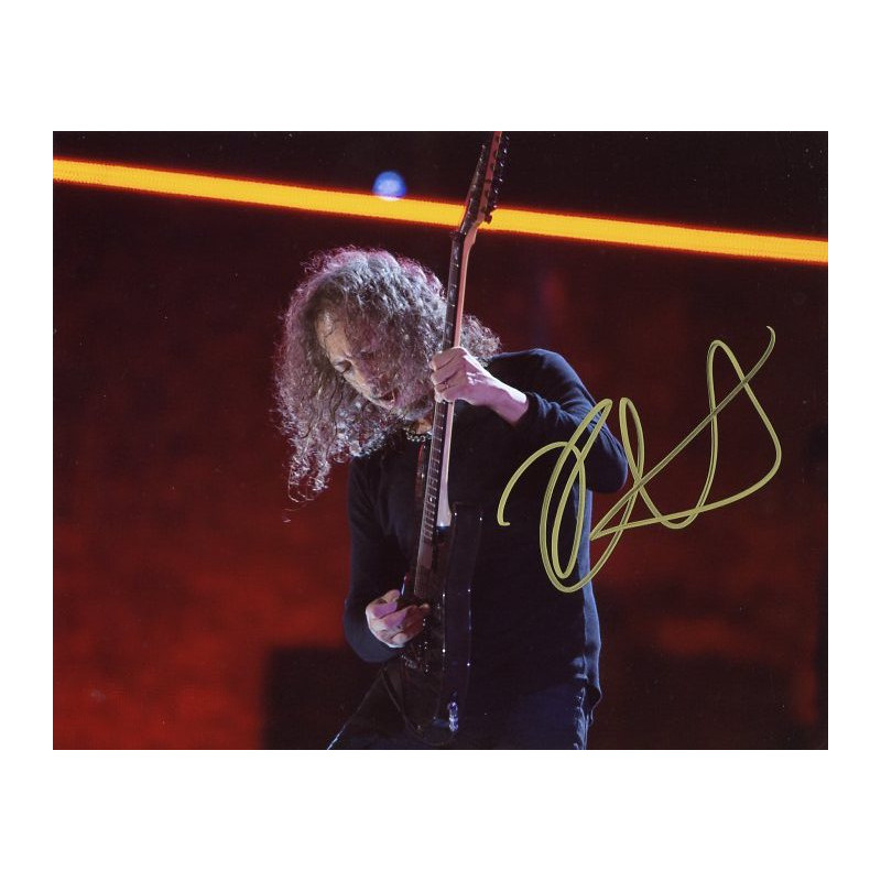 Find in second image Kirk Hammett signing for us